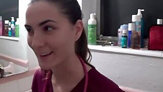 French amateur milf in sexy satin lingerie acing sex exam with deepthroat, rimming, and dirty talk in POV