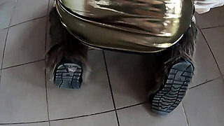 Golden Dress, Fur & Smoking Hairy Pussy, Deep Blowjob & Hard Doggy on a Freezer