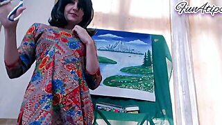 Naughty stepson catches exhibitionist milf showing off her hairy pussy at 55